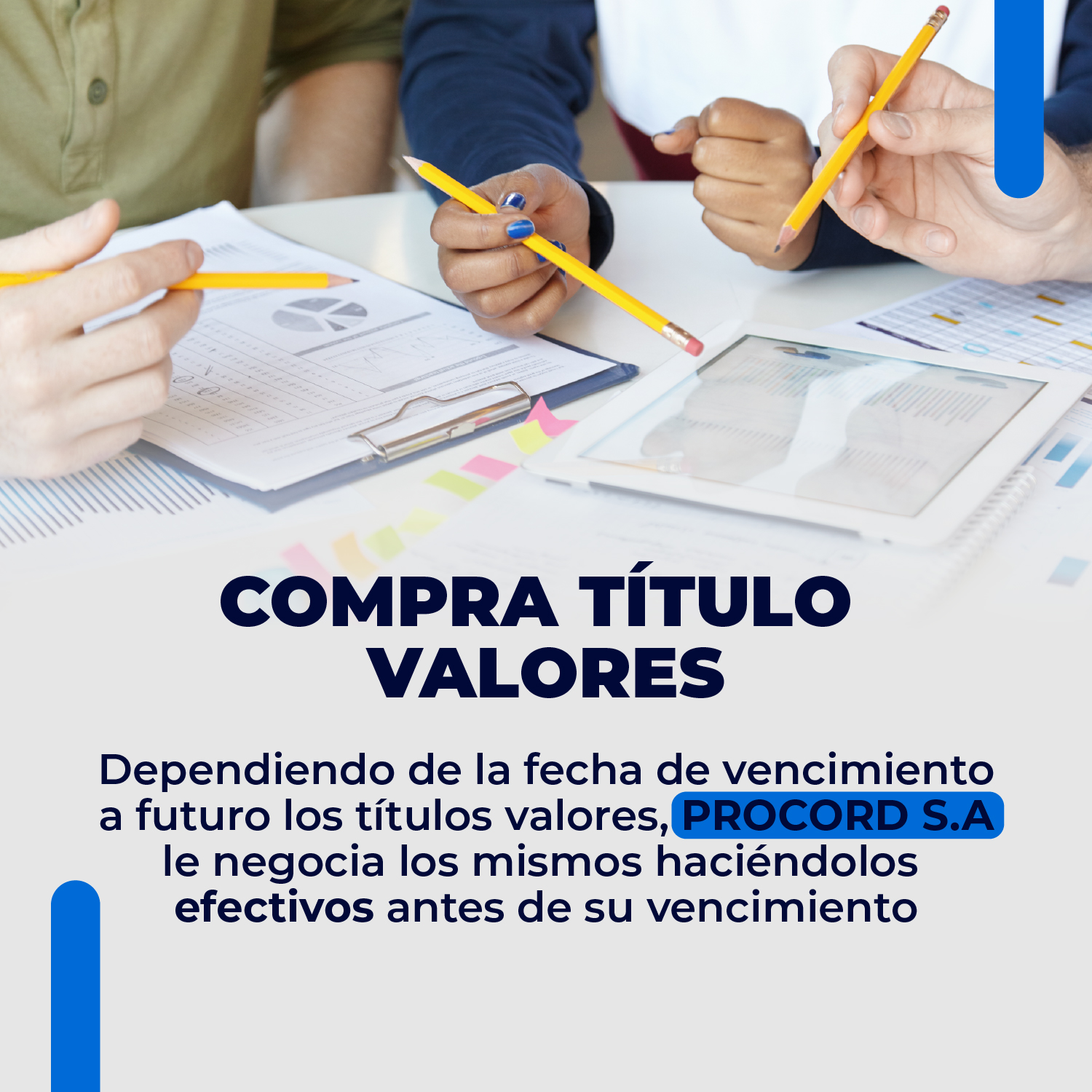 Dependiendo de la fecha de vencimiento a futuro de los Títulos Valores, PROCORD S.A. le negocia los mismos haciéndolos efectivos antes de su vencimiento.
