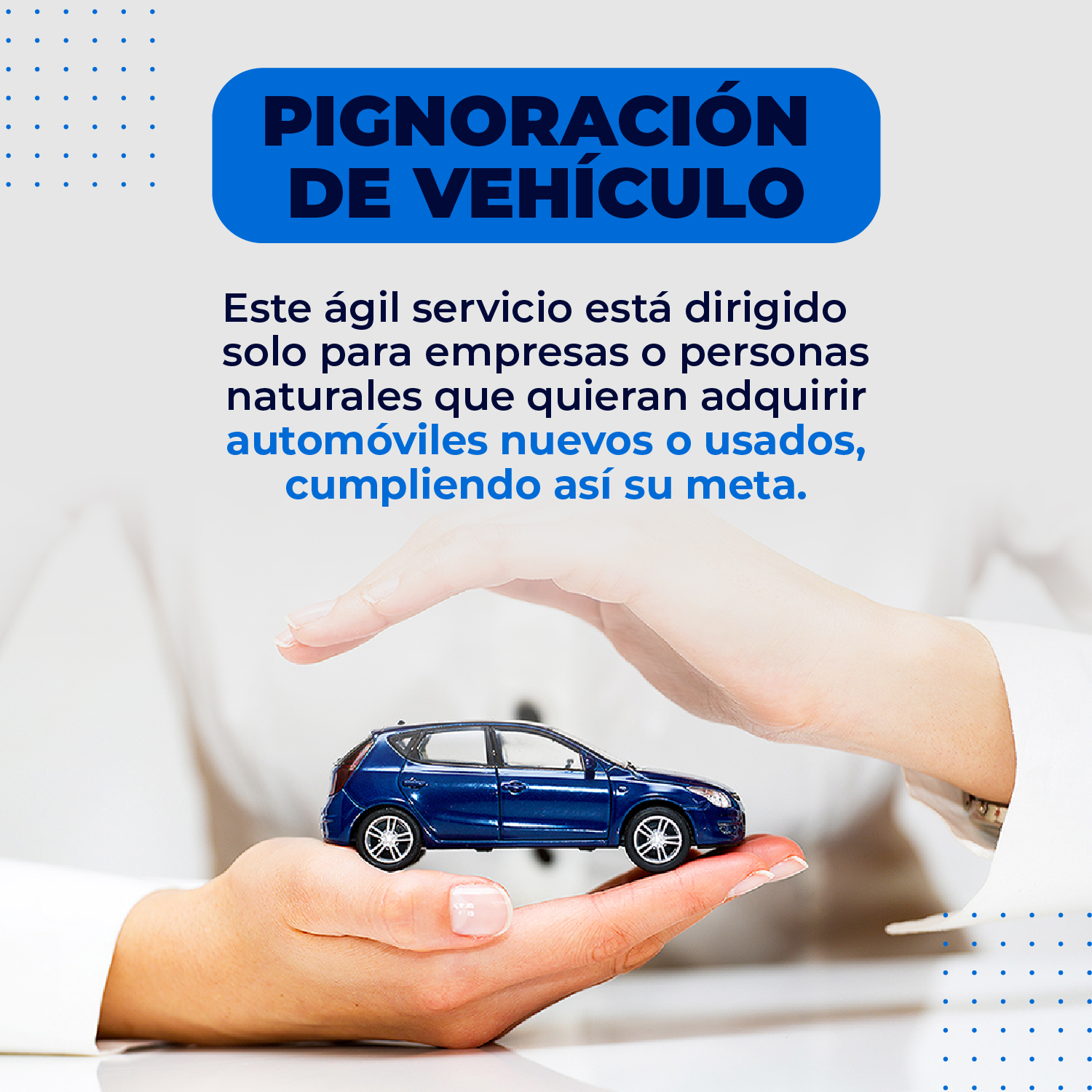 Este ágil servicio está dirigido a las concesionarias de vehículos o personas particulares que quieran adquirir automóviles nuevos o usados, cumpliendo así su meta.